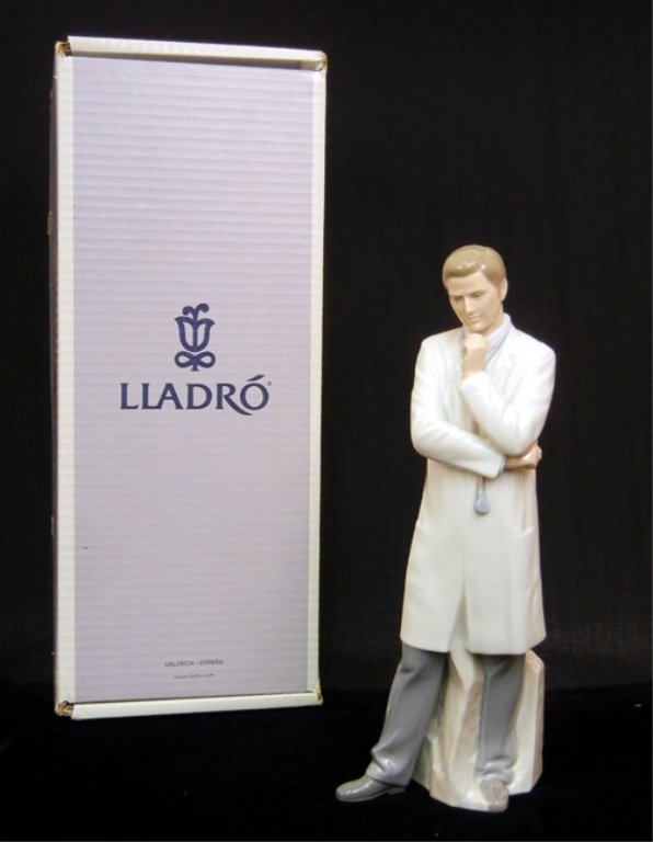 A Lladro porcelain figure of a doctor. 56 . A Royal Doulton figure, 'Camellia' HN2222. 57 . Six continental porcelain figures. A Staffordshire pottery male/female figure group, another (a/f), a Staffordshire pottery castellated gatehouse and four copper lustre jugs. ... Retrieve Content